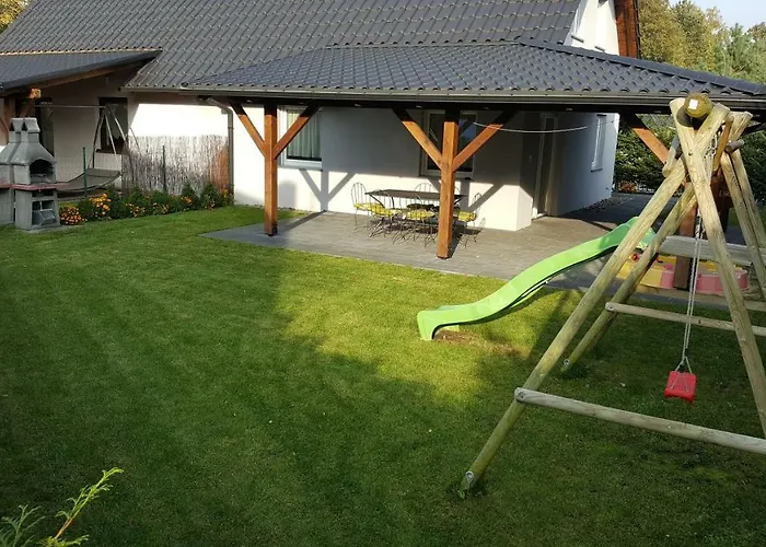 Con instalaciones de autoservicio como una pequeña cocina, la propiedad también cuenta con una zona de comedor exterior donde los huéspedes pueden relajarse y disfrutar de sus comidas. El aeropuerto más cercano es Zielona Góra, situado a 60 km de este establecimiento.